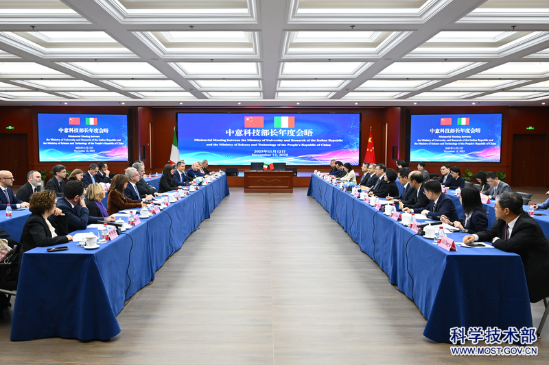 2025年11月12日,科技部部长阴和俊在北京会见了意大利大学和研究部部长安娜·玛丽亚·贝尔尼尼(Anna Maria Bernini)。双方就深化和拓展中意科技创新合作深入交换意见。