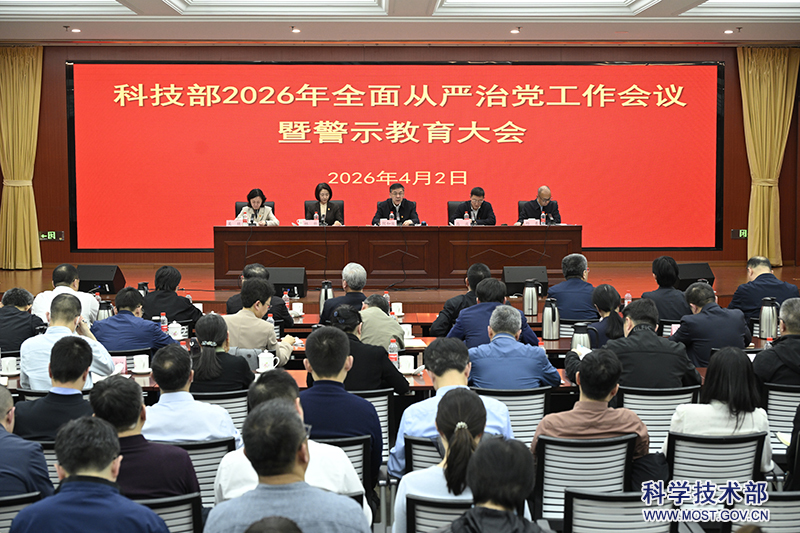 4月2日,科技部召开2026年全面从严治党工作会议暨警示教育大会,深入学习贯彻习近平总书记关于党的建设的重要思想、关于党的自我革命的重要思想,全面贯彻落实党的二十届四中全会和中央纪委五次全会精神以及中央和国家机关工委的部署安排,坚定拥护“两个确立”、坚决做到“两个维护”,深入分析部系统全面从严治党工作形势,深刻剖析严重违纪违法典型案例,推动以案促改促治,纵深推进全面从严治党,为加快高水平科技自立自强、建设科技强国提供坚强保障。部党组书记、部长阴和俊出席会议并讲话,驻部纪检监察组组长、党组成员高波讲话,会议由党组成员、副部长、直属机关党委书记林新主持,党组成员邱勇、窦贤康、吴兢出席会议。