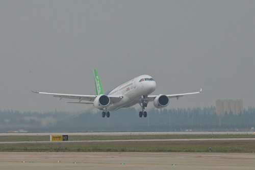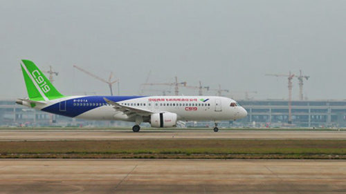 2017年5月5日,C919大型客机首架机在上海浦东国际机场成功首飞。中共中央、国务院为C919大型客机成功首飞发来贺电。