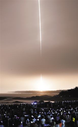 4月20日19时41分,搭载着天舟一号货运飞船的长征七号遥二运载火箭,在我国文昌航天发射场点火发射,进入预定轨道,发射取得圆满成功。新华社记者 郭程摄