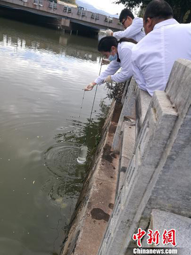 图为上海交通大学云南(大理)研究院工作人员进行水质测试。 杜潇潇 摄