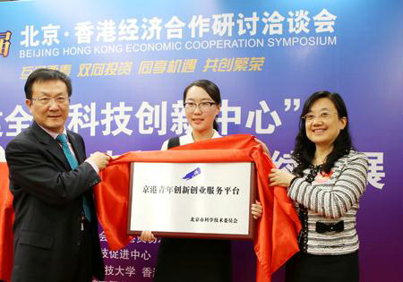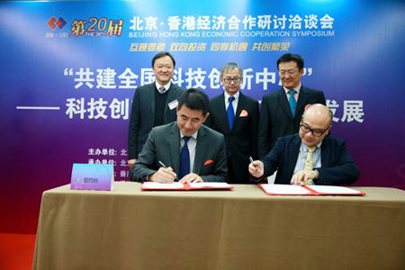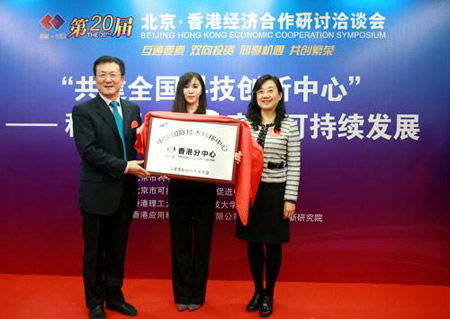 北京市科委副主任朱世龙和京泰集团总经理孟芳共同为“中国国际技术转移中心香港分中心”和“京港青年创新创业服务平台”揭牌。随后,在北京市科委的推动下,北京市科委人才交流中心和香港应用科技研究院就研发人才的输送、培养与交流签署了合作备忘录。