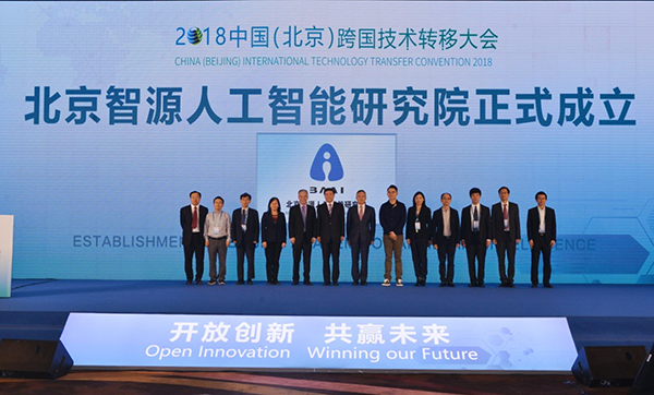 11月14日,在2018中国(北京)跨国技术转移大会开幕式上,北京智源行动计划正式发布,北京智源人工智能研究院(Beijing Academy of Artificial Intelligence,BAAI)揭牌成立。科技部党组书记、部长王志刚,北京市委副书记、市长陈吉宁出席会议。