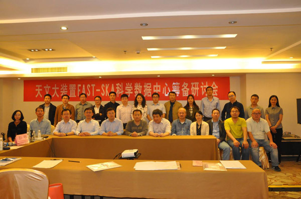 4月28日,贵州省科技厅在贵阳组织召开 “天文大装置FAST-SKA科学数据中心”筹备研讨会,就“天文大装置FAST-SKA科学数据中心”筹备工作中存在的重点难点问题,邀请全国有关领域的教授、科研人员进行研究讨论。贵州省科技厅厅长廖飞、副厅长雷文蓉出席并讲话,中科院FAST重点实验室主任、省科技厅副厅长彭勃主持会议,SKASDP中国联盟核心成员、国家天文台SKA/FAST数据处理核心成员及省内相关高校科研人员参加会议。