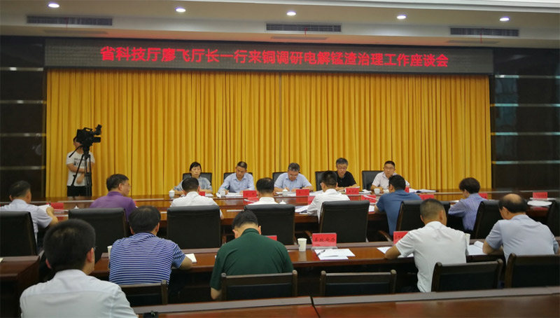 为落实贵州省委书记、省长对电解锰渣治理的批示,结合“千企面对面”服务行动计划及民生调研的具体工作,近日,贵州省科技厅党组书记、厅长廖飞率贵州省科技厅调研组到铜仁市松桃县调研电解锰渣治理工作,并召开座谈会。市委书记陈昌旭,市委副书记、市长皮贵怀等参加调研座谈。