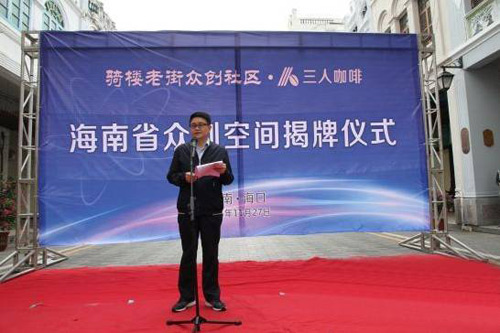 11月27日,“三人咖啡”众创空间在海口骑楼老街举行揭牌仪式。“三人咖啡”众创空间位于中山路15号,设有400平米的创业咖啡馆和1200平米电子商务类创业企业孵化器及服务中心。该空间自今年10月投入运营,已吸引哪里吃网、火吧等多家创业企业进驻,已举办创业培训、创业沙龙及项目路演等活动近十场。还设立了以本土知名企业家、专家为主组成的理事会和导师团,通过到场座谈和微信群沟通等方式为创业者提供零距离辅导。同时,众创空间已与平安银行、海口农商行、海控资本、大唐投资等机构签订战略合作协议,为优质项目提供创业资金扶持。另外,“三人咖啡”众创空间安装的免费WiFi信号覆盖整条中山路街道,不仅为众创空间提供办公网络,还方便了市民游客在骑楼老街消费、休闲的网络使用。