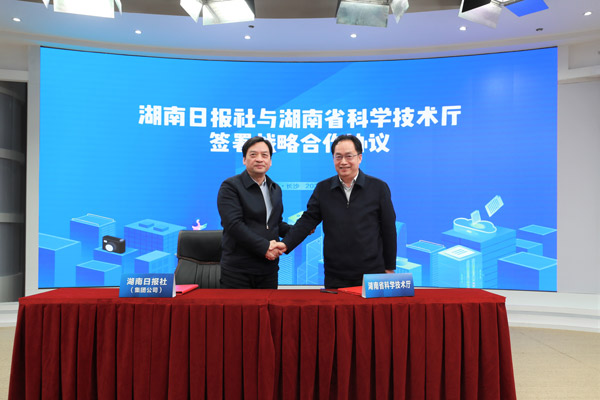 3月11日上午,湖南省科技厅与湖南日报社战略合作协议签约仪式在长沙举行,双方将围绕文化和科技深度融合、媒体融合发展、科学普及宣传等方面开展深入合作,为湖南省大力实施“三高四新”战略,推进创新型省份建设贡献力量。湖南省委常委、省委宣传部部长张宏森出席并讲话。