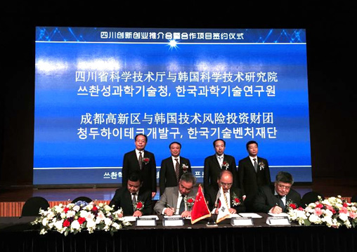 2015年,李克强总理与韩国朴槿惠总统就中韩创新创业合作达成重要共识,双方就推进创新创业合作平台建设作了大量工作并取得了良好进展。为进一步推动中韩创新创业园建设,务实推动两国创新创业交流和合作对接,2016年5月12日下午,由四川省科学技术厅、四川省人民政府外事侨务办公室、成都高新区管理委员会共同主办的四川创新创业推介会暨合作项目签约仪式在韩国首尔隆重举行。