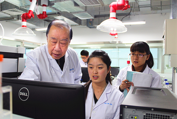 中国工程院院士管华诗带领“蓝色药库”研究团队正在工作
