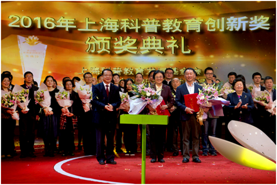 近日,2016年上海科普教育创新奖颁奖典礼在上海儿童艺术剧场隆重举行,表彰为上海市科普事业做出突出贡献的个人和组织。上海市人大常委会副主任薛潮、上海科普教育发展基金会理事长左焕琛、上海市科委副主任干频等出席颁奖典礼。