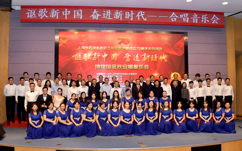 9月28日下午,“讴歌新中国,奋进新时代”——上海市科技系统职工庆祝新中国成立70周年合唱音乐会隆重举行,市科技党委副书记、市科技工会主席陈龙,市纪委监委驻市科技工作党委纪检监察组组长蔡桂其,上海科技馆党委书记王莲华等领导,以及市科技系统部分职工代表等300余人参加了本次音乐会。