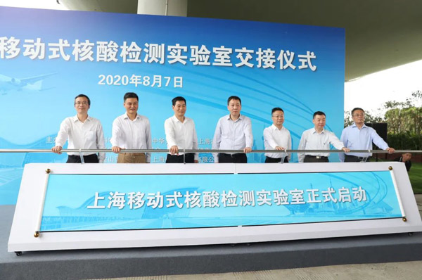 2020年8月7日上午,上海应急科技攻关项目“上海移动式核酸检测方舱实验室”(以下简称“实验室”)在浦东国际机场正式交付。市政府副秘书长陈鸣波出席仪式,并与市科技党委、上海海关、市科委、市经信委、市卫健委、宝山区政府、机场集团等代表共同见证实验室启动。