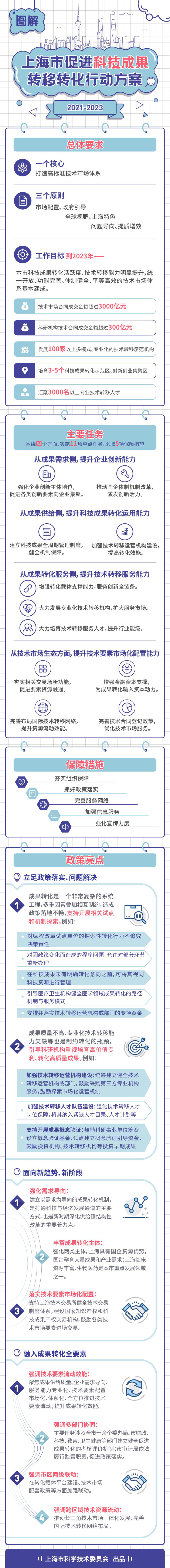 为持续促进上海市科技成果转化,建设更高质量、更强功能、更大规模的技术市场,根据国家和上海市相关法律法规和政策文件,市政府办公厅于6月2日正式印发《上海市促进科技成果转移转化行动方案(2021-2023)》(以下简称“《行动方案》”)。