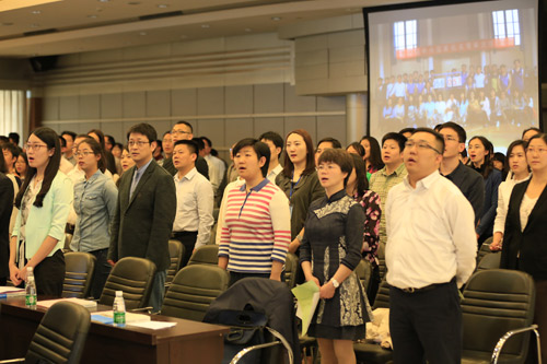 出席会议领导起立唱团歌