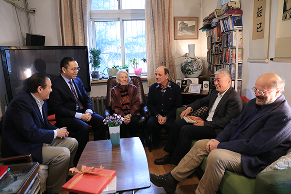 12月15日,科技部党组书记、部长王志刚赴北京外国语大学,看望中华人民共和国友谊勋章获得者、北京外国语大学退休教授、加拿大籍外国老专家伊莎白,并为其庆祝104岁生日。