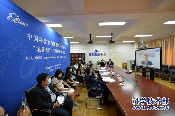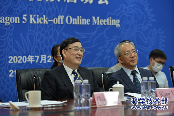 为全面开启中欧科技合作“龙计划”(以下简称“龙计划”)五期项目实施,开通中欧双方地球观测数据共享渠道,分享和交流合作经验,在中欧双方共同推动下,“龙计划”五期启动会于2020年7月21日以视频会议的方式成功召开。科技部副部长王曦与欧洲空间局(以下简称欧空局)局长扬·沃纳出席会议。国家遥感中心主任王琦安、合作司副司长陈霖豪、欧空局对地观测部部门负责人莫里斯·伯杰、参加“龙计划”的中欧双方科学家代表、五期项目负责人以及科技部和欧空局相关部门的领导和工作人员近160人在线参会。会议由王琦安和莫里斯·伯杰共同主持。