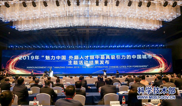 2020年11月8日,科学技术部国外人才研究中心发布了2019年“魅力中国—外籍人才眼中最具吸引力的中国城市”主题活动结果。2019年“魅力中国——外籍人才眼中最具吸引力的中国城市”十强城市为:上海、北京、深圳、杭州、广州、合肥、南京、成都、青岛、苏州(即榜单第1—10名);2019年“魅力中国——外籍人才眼中最具吸引力的中国城市”最具潜力城市为:西安、宁波、天津、厦门、济南、长春、东莞、长沙、大连、昆明(即榜单第11—20名)。