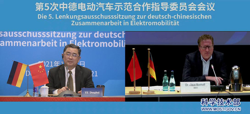 2021年11月1日,中德电动汽车示范合作指导委员会第5次会议以视频会形式举行。科技部国际合作司司长叶冬柏与德国联邦交通和数字基础设施部政策司司长邦霍夫博士(Dr.Klaus BONHOFF)围绕两国新能源汽车发展战略、中德电动汽车合作进展及未来合作重点等深入交换意见。