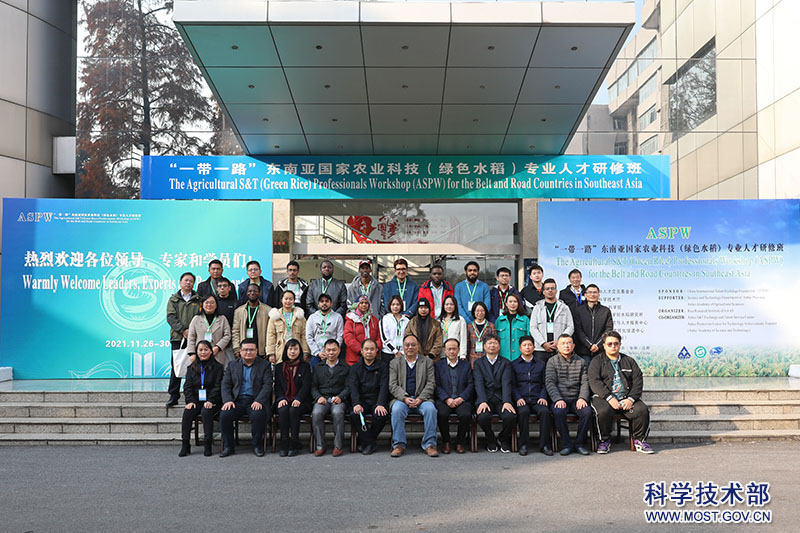 2021年11月27—30日,由中国国际人才交流基金会主办、安徽省农业科学院水稻研究所承办的“一带一路”东南亚国家农业科技(绿色水稻)专业人才研修班在安徽合肥线上线下同时开班。安徽省科学技术厅作为支持单位给予了大力帮助。此次研修班旨在推动“一带一路”沿线国家科技交流与合作,向“一带一路”国家传递中国稻作文化,架起中国与学员所在国家之间农业科技领域的合作桥梁。研修班学员包括来自22个国家负责农业科学技术管理人员、水稻种植领域的专业人才以及在合肥市就读的农业方向的留学生共132人。科技部外国专家服务司副司长李昕、中国国际人才交流基金会副主任万金发等出席开班式。
