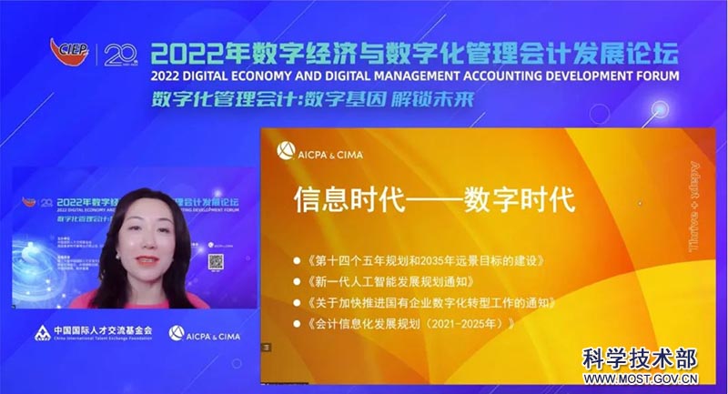 7月29日,由中国国际人才交流基金会(简称“基金会”)和英国皇家特许管理会计师公会(简称“CIMA”)共同主办的“2022年数字经济与数字化管理会计发展论坛”在北京举办。基金会副主任万金发、国际注册专业会计师公会(简称“AICPA? & CIMA?”)北亚区总裁李颖为论坛致辞,来自中国人才研究会、中国社会科学院、南开大学的专家围绕数字化财会人才发展主题作主旨演讲。来自金融、医药、高校、互联网等领域的行业领袖、专家学者围绕“数字化管理会计的探索与实践”主题进行圆桌对话。来自政府机构、银行企业、高等院校、培训机构的30多名代表受邀参加论坛。论坛实况通过网络直播平台向公众开放,截至论坛结束,已有超58万人次在线观看了现场直播。