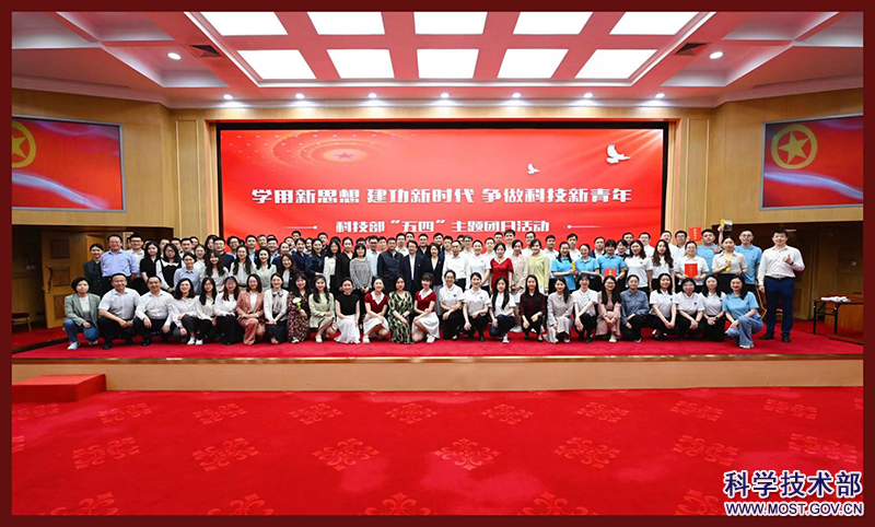 按照科技部党组关于深入开展学习贯彻习近平新时代中国特色社会主义思想主题教育的统一部署,直属机关团委于5月12日下午举办了“学用新思想 建功新时代 争做科技新青年”五四主题团日活动,深入学习贯彻习近平总书记关于青年工作的重要思想,庆祝“五四”青年节,弘扬“五四”精神。部党组成员、副部长吴朝晖,党组成员、秘书长林新出席活动。共青团中央宣传部副部长汤杰,中央主题教育第32指导组成员张发茂、赵慧芝莅临指导,发改委、工信部、商务部、卫健委、人民银行、广电总局、中科院、工程院、中国科协、北京市科委及海淀区团委的团青干部代表受邀参加活动。