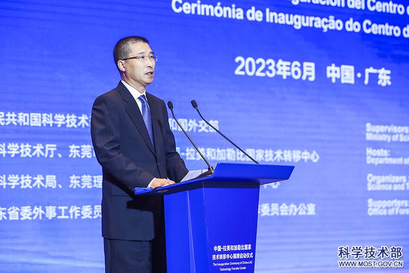 2023年6月28日,中拉技术转移中心揭牌启动仪式在广东省东莞市举行。科技部副部长张广军出席活动并发表致辞。