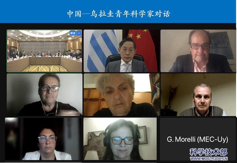 为庆祝中国与乌拉圭建交35周年,落实中乌政府间科技合作混委会第四次会议共识,推动两国科技人员交流互动,在中国科学技术部国际合作司指导下,中国科学技术交流中心会同中国驻乌拉圭大使馆、乌拉圭教育文化部和乌拉圭驻华大使馆于2023年12月5日在北京举办中国—乌拉圭青年科学家对话。中国驻乌拉圭大使黄亚中、交流中心四级职员富贵、科技部国际合作司代表、乌拉圭驻华大使费尔南多·卢格里斯、乌拉圭教育文化部创新科技司司长阿尔韦托·马霍和乌拉圭共和国大学校长罗德里戈·阿里姆率代表团出席活动并致辞,20余名中乌科学家以线上线下相结合的方式积极参与对话交流活动。