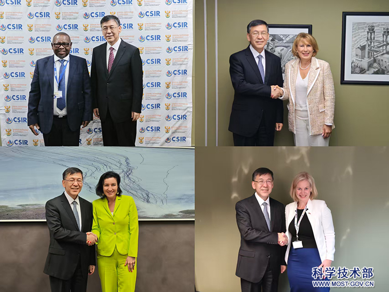 会议期间,阴和俊与南非科学、技术和创新部部长布莱德·恩齐曼迪举行会见,就深化双多边科技创新合作交换意见。双方签署了《中华人民共和国科学技术部与南非共和国科学技术和创新部关于共同支持实施国际大科学计划的谅解备忘录》。阴和俊还与加拿大首席科学顾问、德国联邦研究、技术与航天部部长、挪威教育科研部部长、瑞士联邦教育、研究和创新国务秘书等举行了双边会晤。9月25日,中方与南非、巴西、非盟等方共同举办了开放科学国际合作高官会。