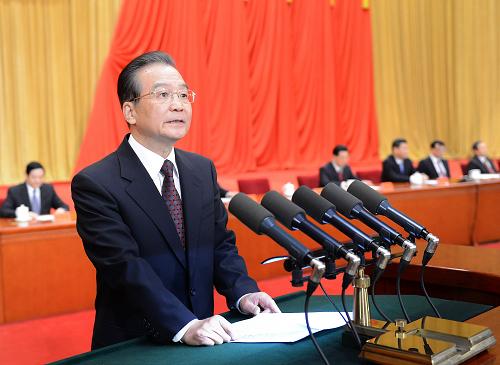 1月18日,中共中央、国务院在北京人民大会堂隆重举行国家科学技术奖励大会。胡锦涛、习近平、温家宝、李克强、刘云山出席大会并为获奖代表颁奖。这是国务院总理温家宝代表党中央、国务院在会上讲话。新华社记者 刘建生 摄