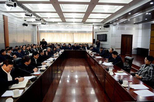 2月21日,国务院总理温家宝在科技部调研。这是温家宝参加座谈会。