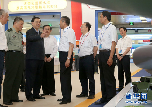 6月3日,中共中央政治局常委、全国人大常委会委员长张德江在北京展览馆参观国家"十二五"科技创新成就展。