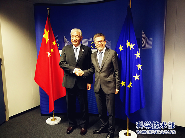 为落实中欧领导人共识,为中欧全面战略伙伴关系注入新内涵、提供新支撑,不断深化中欧科技创新合作关系,第四次中欧创新合作对话于2019年4月9日在布鲁塞尔举行。对话由中国科学技术部部长王志刚和欧盟委员会科研与创新委员卡洛斯·莫达斯共同主持,双方政府部门、科研机构及创新领域专家代表60余人出席会议。李克强总理和欧盟委员会主席容克共同会见了出席创新合作对话的主要代表并合影留念。