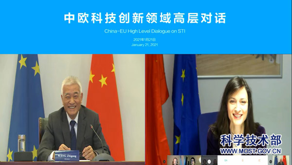 2021年1月21日,科技部部长王志刚以视频方式同欧盟创新、研究、文化、教育和青年委员加布里埃尔(Mariya Gabriel)举行中欧科技创新高层对话,共同就落实双方元首会晤共识、推动中欧科技抗疫合作、加强科技战略规划对接、联合制定中欧科研创新合作路线图等议题深入交换意见。