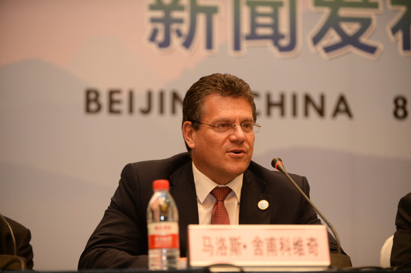 欧盟副主席马洛斯·舍甫科维奇讲话并回答记者提问