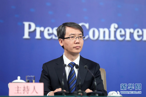 本场记者会主持人(新华网/中国政府网 翟子赫 摄)