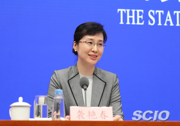 国新办新闻局副局长、新闻发言人袭艳春(刘健 摄)