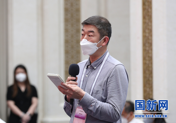 中央广播电视总台央视新闻中心记者提问(张馨 摄)