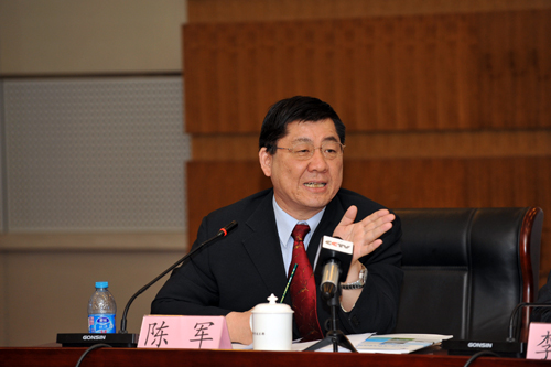年度报告”新闻发布会,图为陈军研究员回答记者提问。