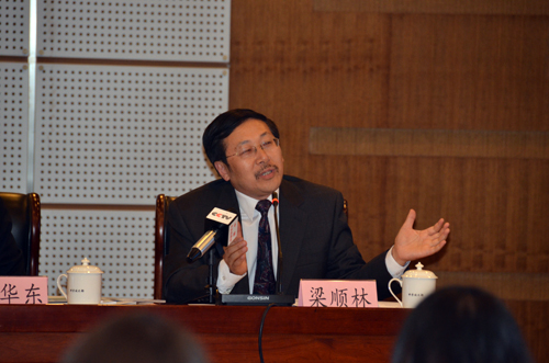 年度报告”新闻发布会,图为梁顺林教授回答记者提问。