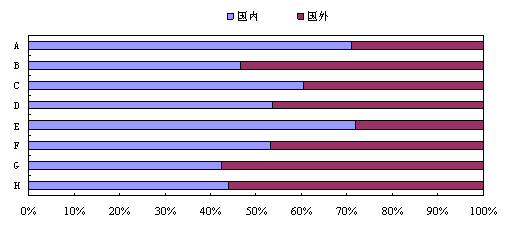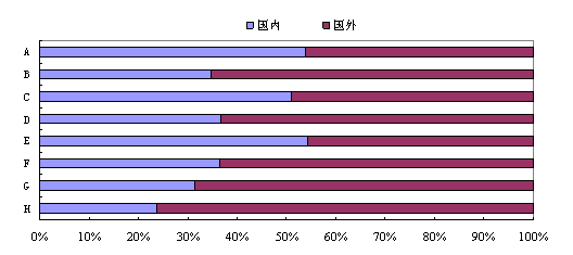 从国内和国外的发明专利申请量在各个技术领域所占比重看,除了“作业、运输”、“物理”和“电学”三个领域略低于国外,国内在其他领域均占优势。但在国外占优势的领域中高新技术的比重大,由此反映出在一些对于综合技术实力和竞争力影响较大的技术领域,我国的技术创新能力和创新水平还有待提高。