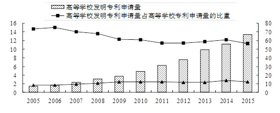 图5 高等学校发明专利申请情况(2005-2015年)