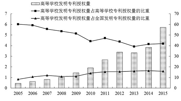 图6 高等学校发明专利授权情况(2005-2015年)