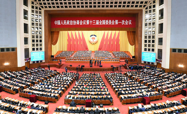 新华社北京3月3日电 凝心聚力携手新时代,继往开来创造新辉煌。经历光荣岁月、坚持团结和民主两大主题的人民政协,又迎来一个重要的历史时刻:中国人民政治协商会议第十三届全国委员会第一次会议3日下午在人民大会堂开幕。
