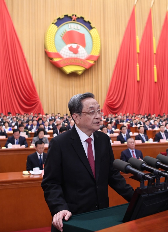 十二届全国政协主席俞正声代表政协第十二届全国委员会常务委员会,向大会报告过去五年的工作。他指出,中共十八大以来的五年,是党和国家发展进程中极不平凡的五年。以习近平同志为核心的中共中央团结带领全党全国各族人民,推动党和国家事业取得历史性成就、发生历史性变革,中国特色社会主义进入了新时代。五年来,以习近平同志为核心的中共中央加强对人民政协工作的全面领导。习近平总书记多次发表重要讲话,提出一系列新思想新论断新要求,科学回答了人民政协事业发展的重大理论和实践问题。政协全国委员会及其常务委员会全面贯彻中共十八大和十九大精神,深入贯彻习近平新时代中国特色社会主义思想,坚持团结和民主两大主题,围绕中心、服务大局,把坚持和发展中国特色社会主义作为巩固共同思想政治基础的主轴,完善协商议政格局,强化民主监督职能,拓展团结联谊工作,加强履职能力建设,推动人民政协事业在继承中发展、在发展中创新,开拓了团结民主、务实进取、蓬勃发展的新局面,彰显了中国特色社会主义制度的优势和特点,在党和国家事业中发挥了不可替代的重要作用、作出了重要贡献。
