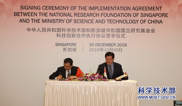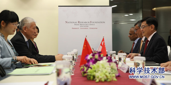 会见后,王志刚部长和王瑞杰代总理还共同见证了中国科技部与新加坡国立研究基金会签署两部门关于推动科技创新合作的执行协议。