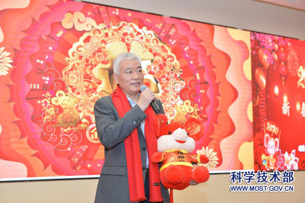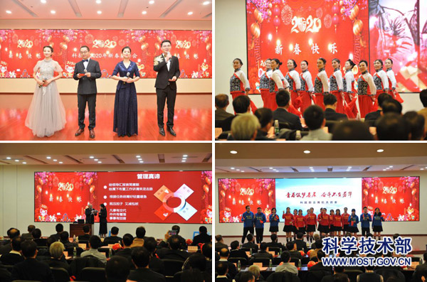 金猪辞旧岁,瑞鼠迎新春。1月20日,科技部举办2020年新春团拜会。科技部全体部领导、驻部纪检监察组全体同志、部机关全体同志、各直属事业单位主要负责同志、自然科学基金委班子成员、科技日报社编委会成员和机关离退休干部代表等欢聚一堂,团拜新春,喜迎佳节。