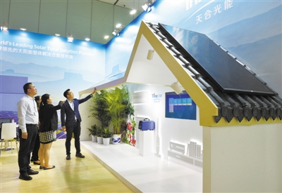 图为展商展示的采用5BB技术的智能化太阳能小屋。