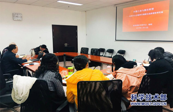 2019年11月13日,科技日报社财务部党支部召开专题理论学习会,学习贯彻党的十九届四中全会精神。支部书记陈昕精心制作了题为《中国之治与报社转型——以四中全会精神引领报社高质量转型发展》的党课课件。