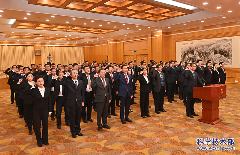 根据《中华人民共和国宪法》和《国务院及其各部门任命的国家工作人员宪法宣誓组织办法》,在新中国成立73周年及党的二十大即将召开之际,科技部于9月23日下午举行宪法宣誓仪式。党组书记、部长王志刚监誓并主持,新任部机关局级、处级领导职务公务员,一级、二级巡视员及事业单位领导人员87人参加宣誓。