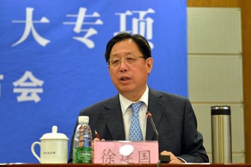 传染病防治重大专项技术副总师徐建国院士介绍有关情况并回答记者提问(科技部信息中心 刘大铭 摄)